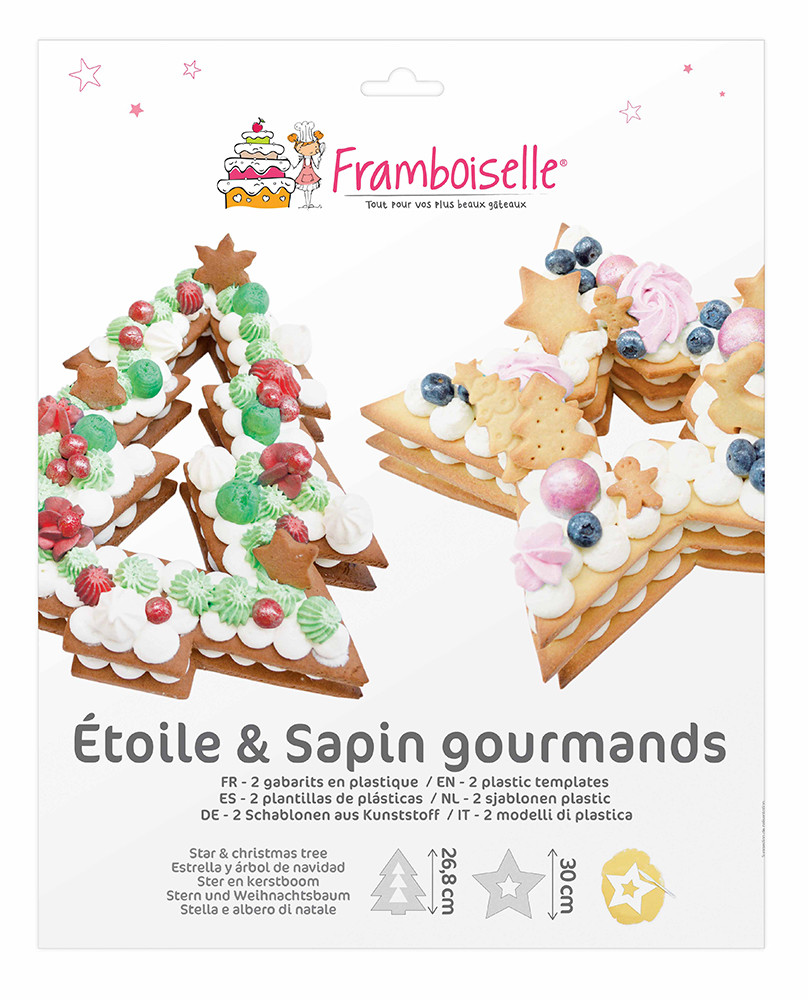 Délicieux, léger et tendance, vous réaliserez un number cake parfait grâce aux 2 gabarits de ce kit en forme de sapin de Noël et étoile !