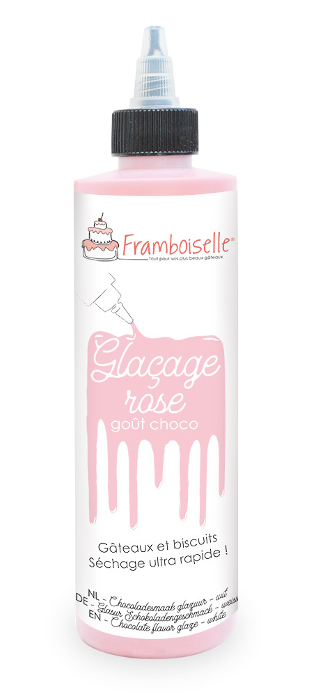 Prêt à l'emploi, ce glaçage rose au goût chocolaté est parfait pour glacer des gâteaux ou décorer des biscuits.
