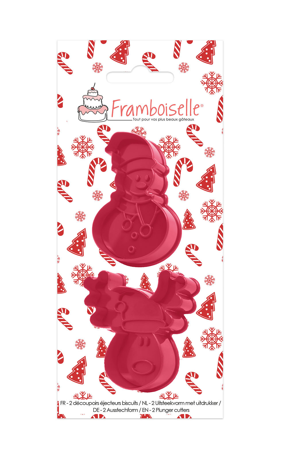 2 Découpoirs éjecteurs "Noël" pour façonner vos biscuits de fêtes de fin d'année ! 2 motifs : 1 bonhomme de neige et 1 tête de renne !