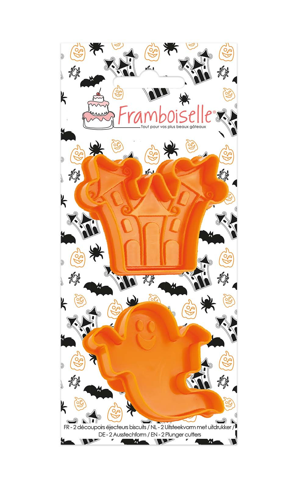 2 Découpoirs éjecteurs "Halloween" pour façonner des biscuits terrifiants et régaler vos petits monstres affamés ! 2 motifs : 1 fantôme et 1 maison hantée !