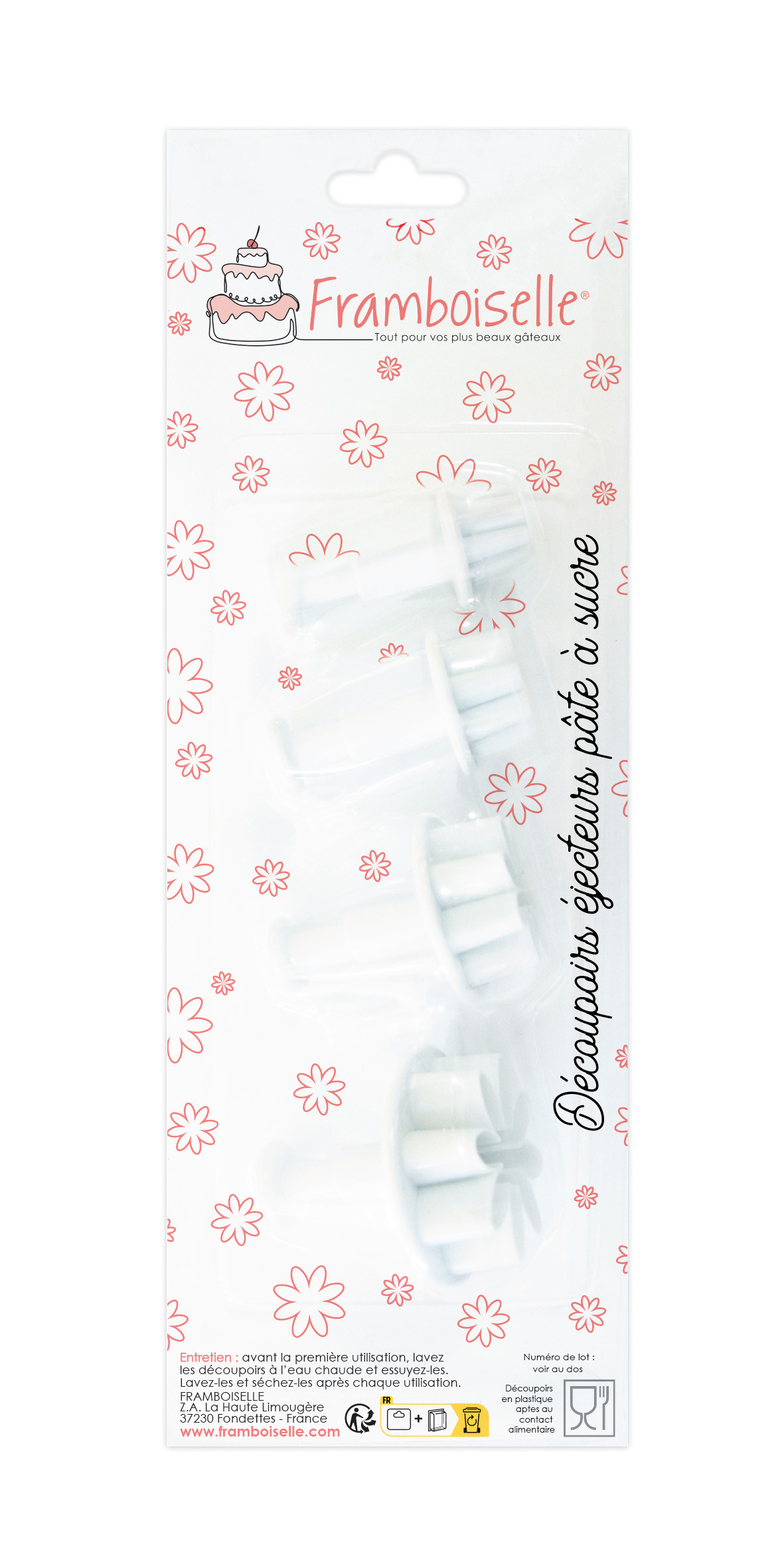 Lot de 4 découpoirs pour réaliser des fleurs en pâte à sucre et décorer ainsi vos desserts.