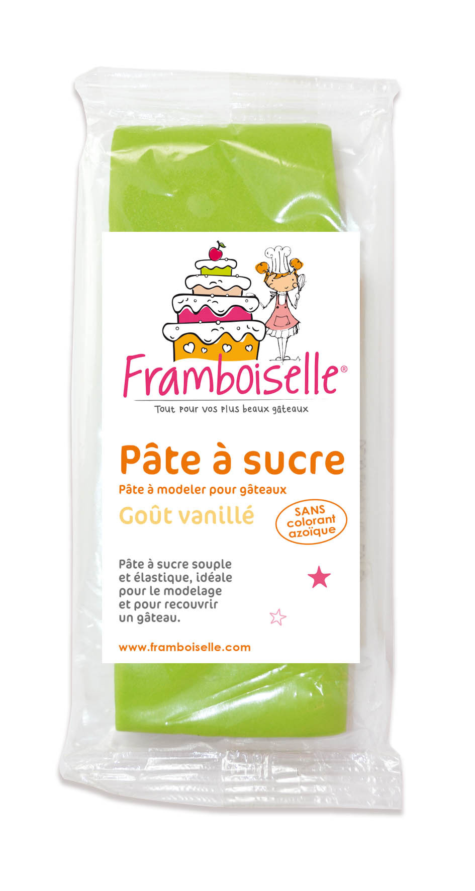 Idéale pour le cake design, la pâte à sucre vert prairie Framboiselle® est de qualité professionnelle, souple, élastique, elle ne se déchire pas et ne colle pas.