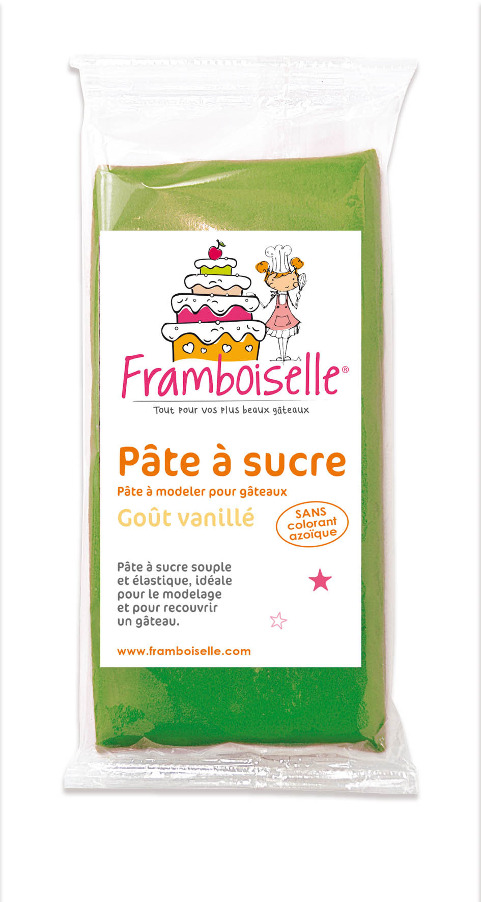 Idéale pour le cake design, cette pâte à sucre vert foncé Framboiselle® est de qualité professionnelle, souple, élastique, elle ne se déchire pas et ne colle pas.