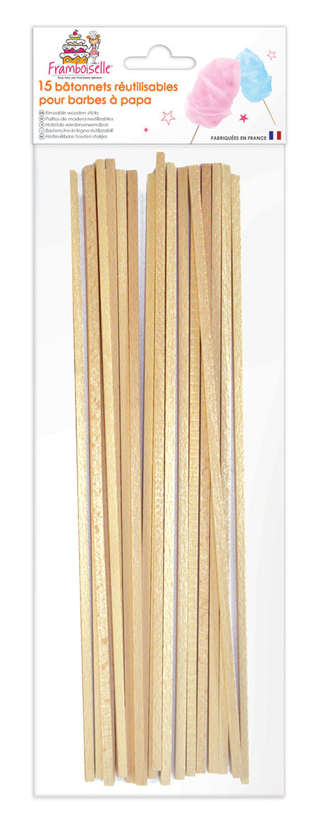 Ces bâtonnets en bois 28 cm sont des supports idéals à la réalisation de vos barbes à papa maison !
